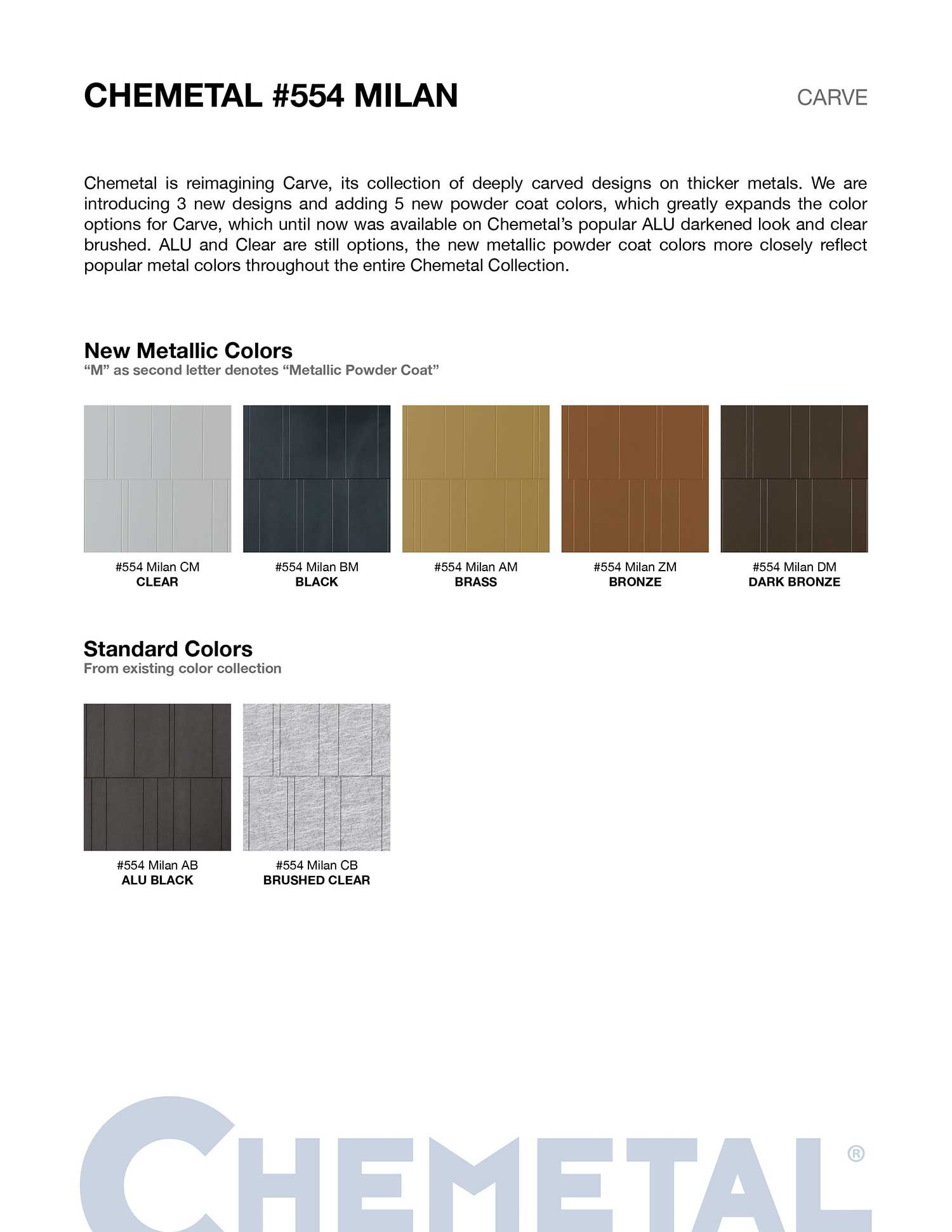 Carve samples will include one 4"x6" sample (not to scale), product and marketing info. Limit one per order. To order samples contact us. 800 807-7341 | samples@chemetal.com