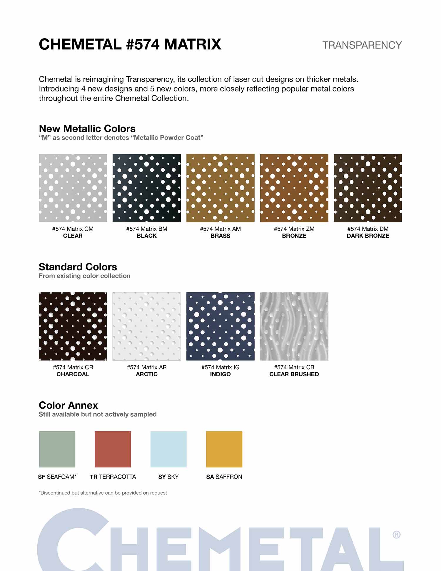 Learn more about Transparency. To order samples contact us. 800 807-7341 | samples@chemetal.com