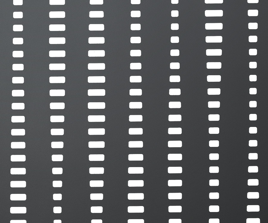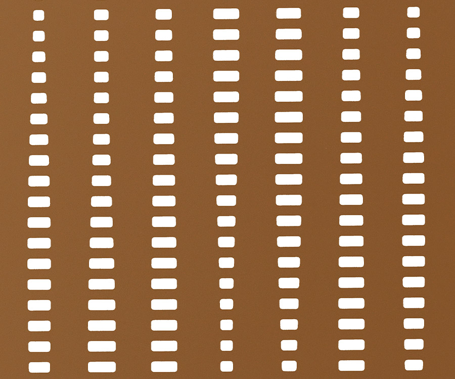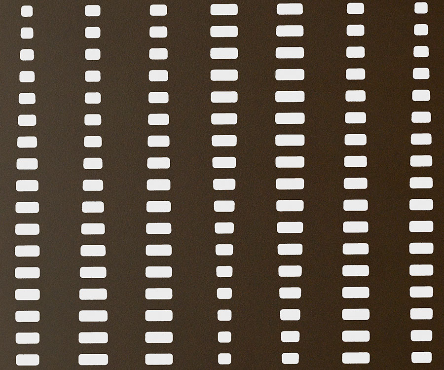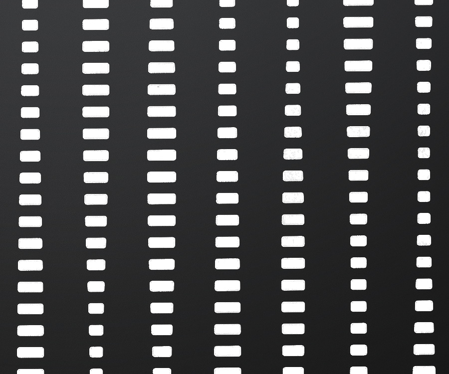 Stereo LED light effect design laser cut on thicker, powder coated aluminum. Many colors and custom solutions: RAL color matching, scaled pattern size, optional frame system, design and fabricate panels to meet project specs and design intent.